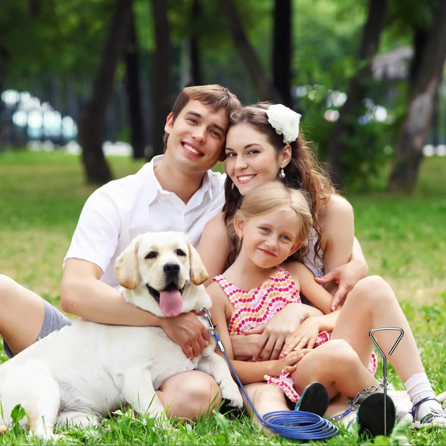 Enhance your outdoor adventure and yard safety with this durable dog tie out cable. For medium to large dogs up to 125 lbs, this product provides reliable restraint while ensuring comfort and security. Made with high quality materials and is built to withstand harsh weather conditions, Anti Rust Spiral Stake has a special coating to remain sturdy and secure without corroding over time. 30 foot long plastic coated cable gives your dog ample room to play and explore without compromising your pets safety or the safety of those nearby!